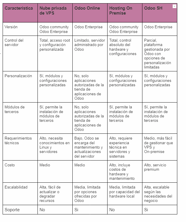 A continuación, exploraremos estas diferentes opciones de alojamiento de Odoo y sus respectivas ventajas y desventajas, con el fin de ayudarte a decidir cuál es la alternativa más apropiada para tu empresa.